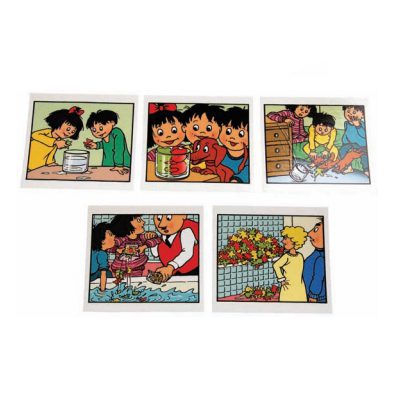 Papá Moll y su familia protagonizan las más divertidas aventuras. Se trabaja describiendo o escribiendo historias. explicando o escribiendo lo que piensan los personajes. viendo una carta o la primera parte de historia. contando o escribiendo el ressto e inventando oe scribiendo un titulo para la hisotria. 160 cartas de 9×9 cm. Medidas 12x11x10 cm.