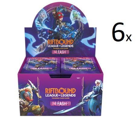 Contenido: 6 cajas de 24 sobres en inglés de Riftbound Unleashed