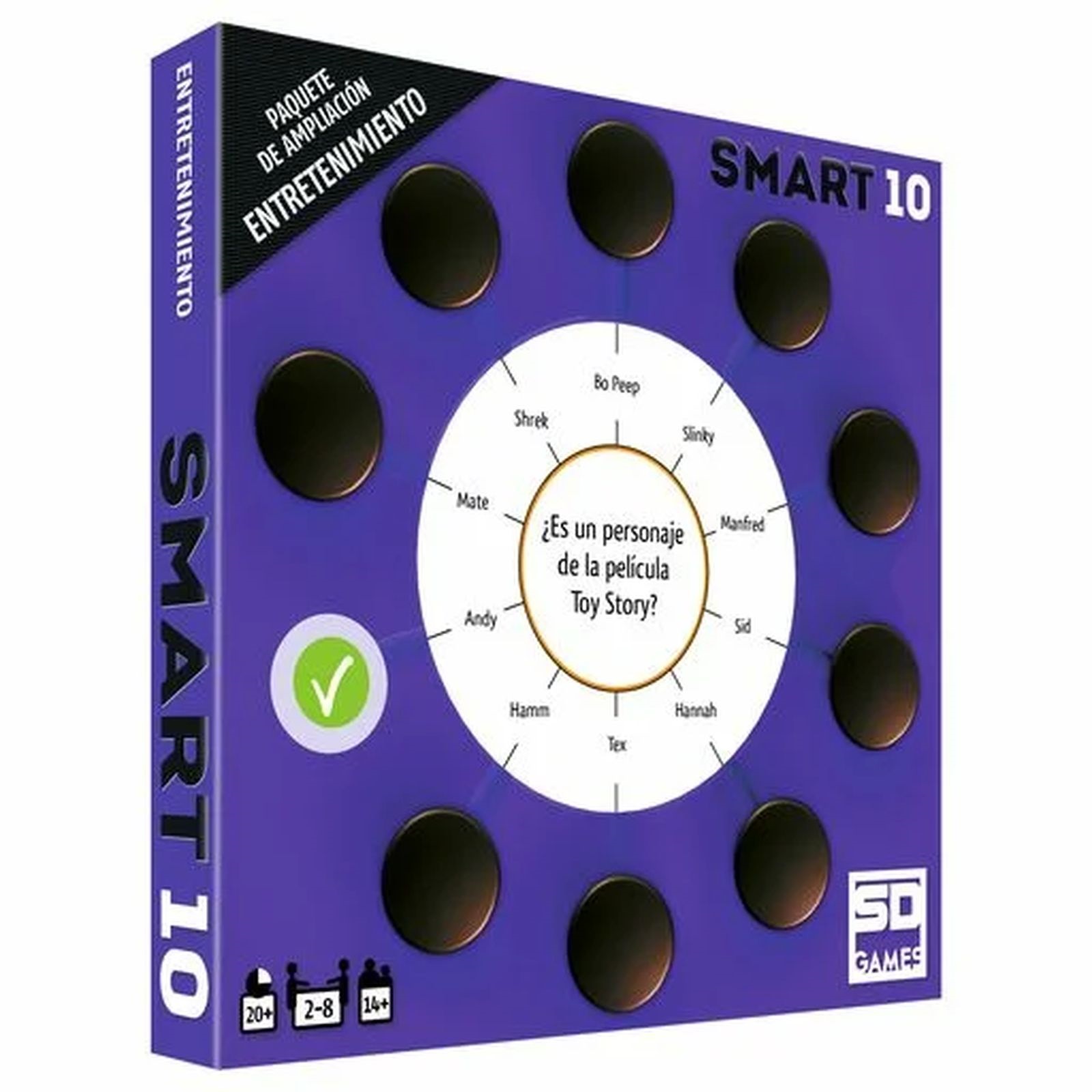 Un nuevo conjunto de tarjetas de preguntas para el juego SMART10! Contiene 50 tarjetas de doble cara con 100 nuevas Preguntas y 1000 nuevas respuestas. El tema es Entretenimiento y las preguntas tratan de cine y televisión, artes escénicas y espectáculos, actuaciones, videojuegos… Reemplazad las tarjetas de preguntas en el Smartbox con dos paquetes de ampliación temáticos o mezclad estas preguntas de entretenimiento con la mitad de las tarjetas originales. Para poder usar estas preguntas se requiere tener la caja Smart incluida en cualquier juego base de Smart10. Edad Recomendada : 14+ Duración Partida: 20 min. Jugadores: 2 a 8