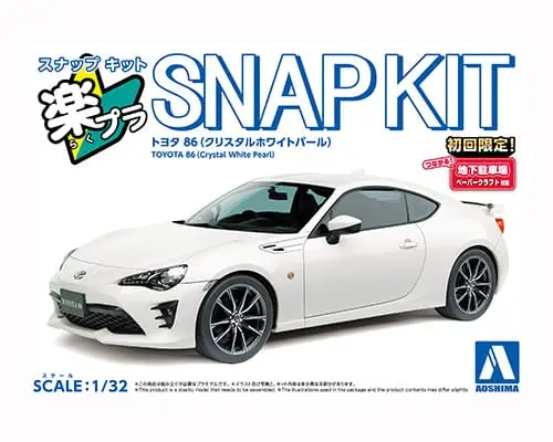 Esta maqueta de gran calidad y facilidad de montaje de la marca japonesa Aoshima en su colección “The Snap Kit” no require de pintura ni pegamento y te proporcionará gran diversión montando una maqueta a escala 1/32 de tu Toyota GT86 favorito en color “Crystal White Pearl”. Para mayor facilidad de montaje, puedes adquirir unas tenacillas nippers que te permitirán separar con gran precisión y limpieza las piezas de los runners.
